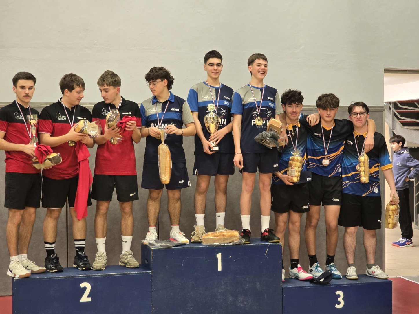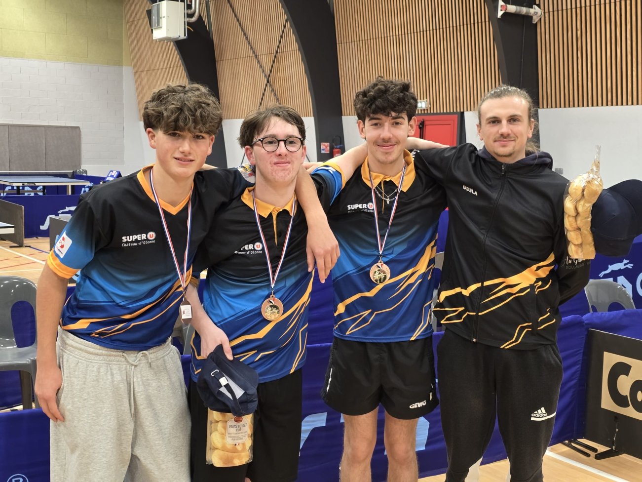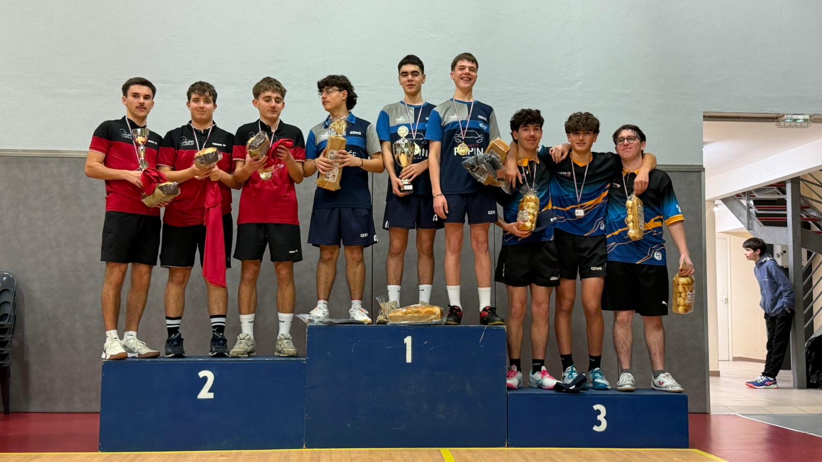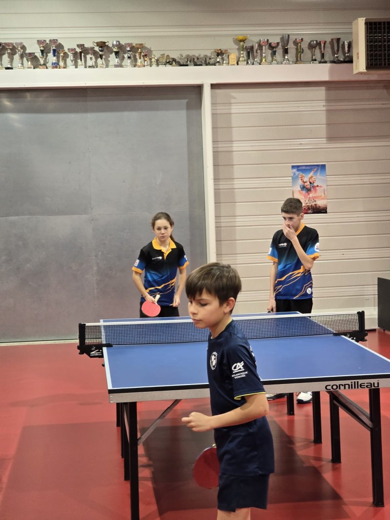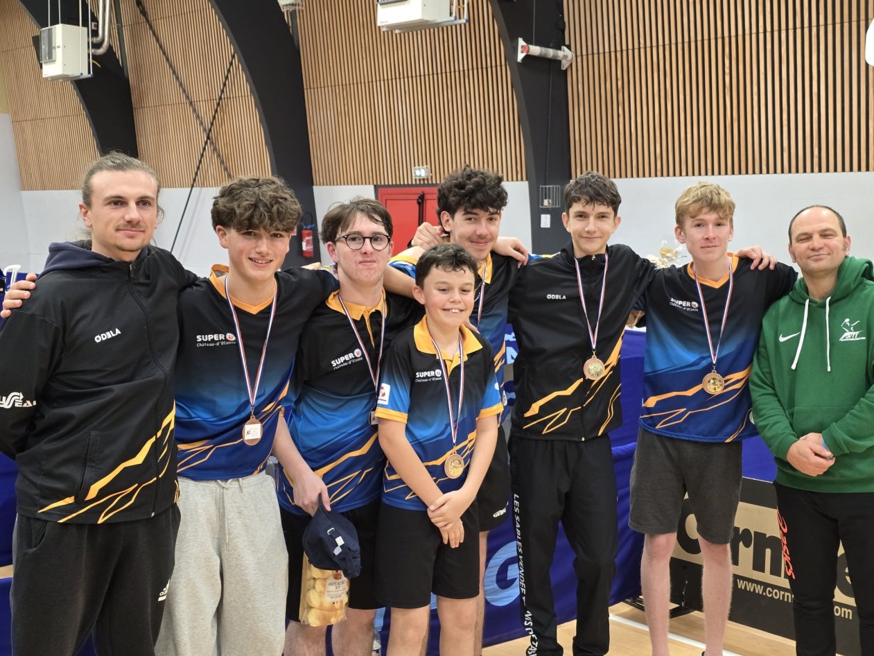 En juniors, Maxime / Louison / Axel décrochent eux aussi la 3ᵉ place 🥉, après une rencontre renversée face à Brétignolles grâce à une belle perf de Louison et à un Maxime solide jusqu’au bout.